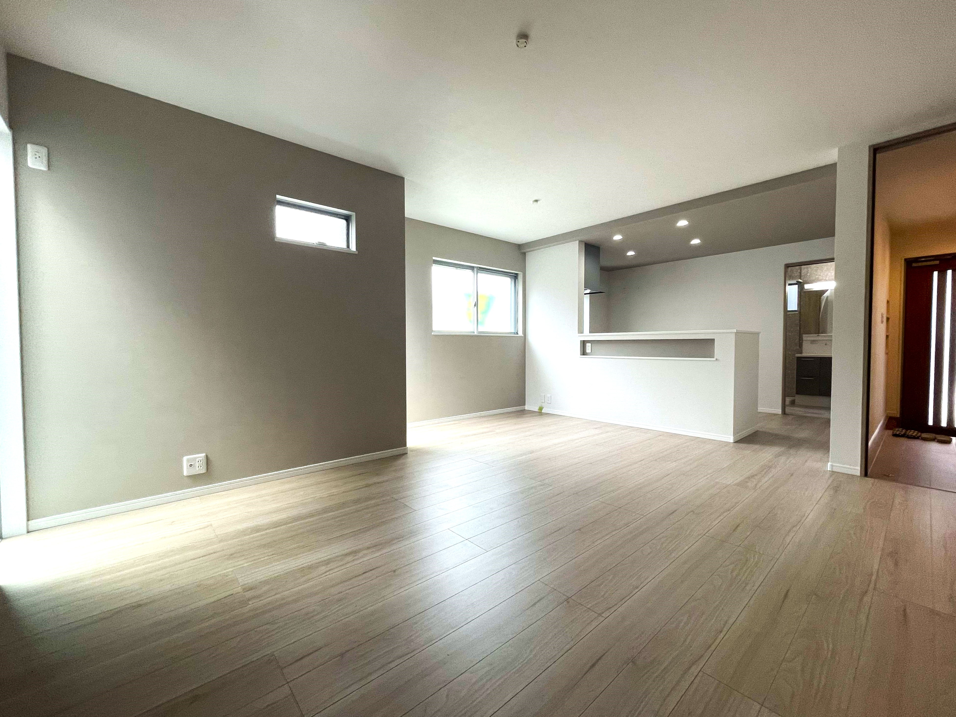 LDKのスペースは20帖以上!一切の収納を考えず、広くLDKを確保しました。